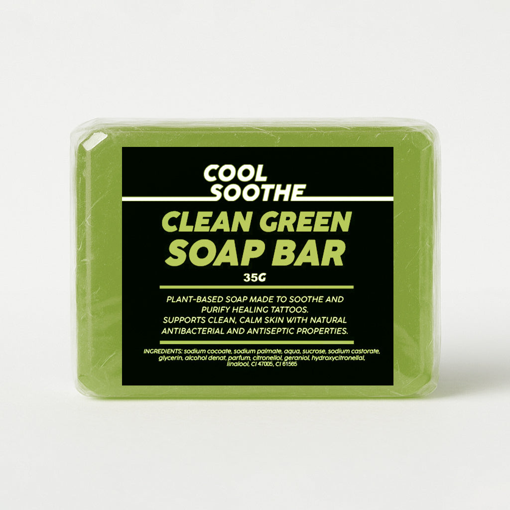 Introducing Green Soap — a clean, grounded, vegan tattoo cleansing bar inspired by herbal freshness and calm clarity. Made from plant-based oils (coconut, responsibly sourced palm, and castor), it creates a gentle, smooth lather that cleans effectively without stripping or irritating the skin.